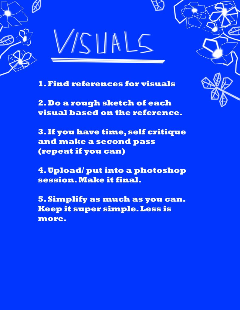 - Do a rough sketch of each visual based on the reference.